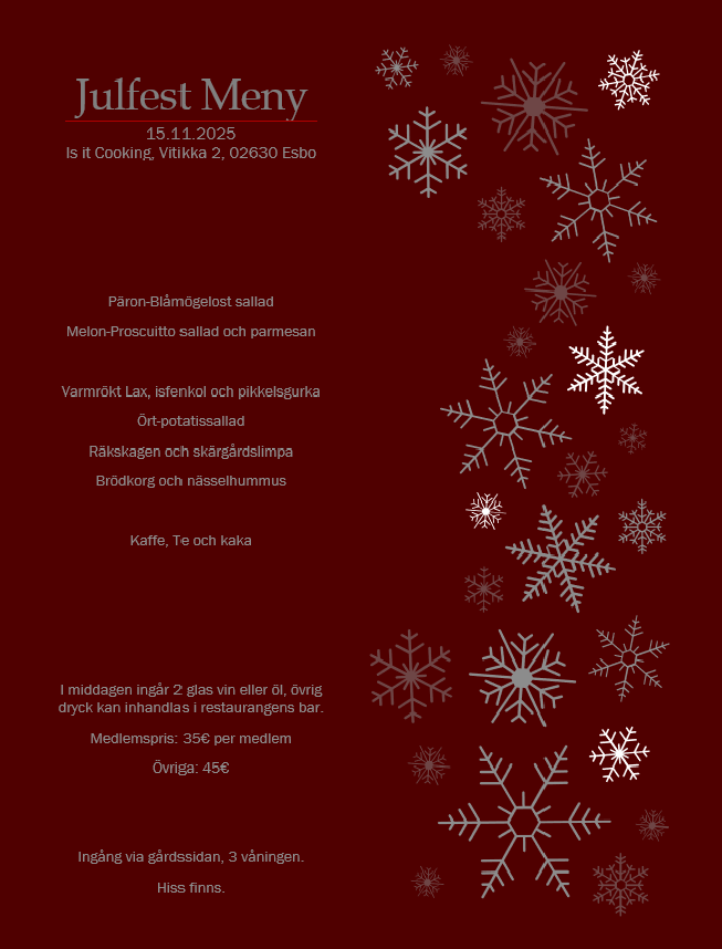Under kvällen på M/S GABRIELLA avnjöts en gemensam, gedigen läcker middag och